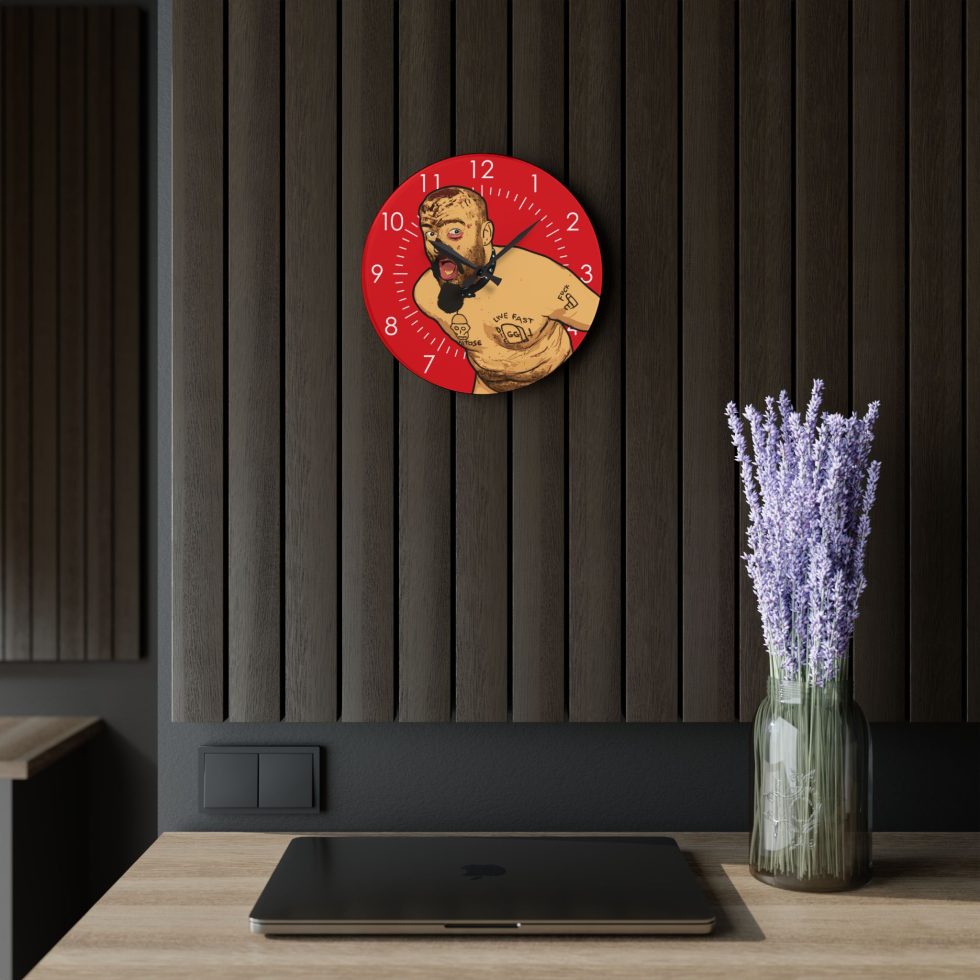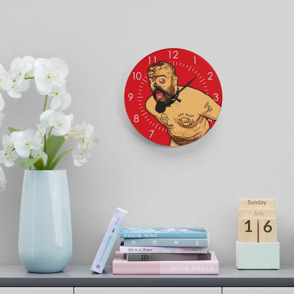 These clocks come in two shapes (round and square) and two sizes. Each clock has a keyhole at the back for easy hanging on a wall. They’re made from an acrylic material that looks like glass but is more durable and sturdy.